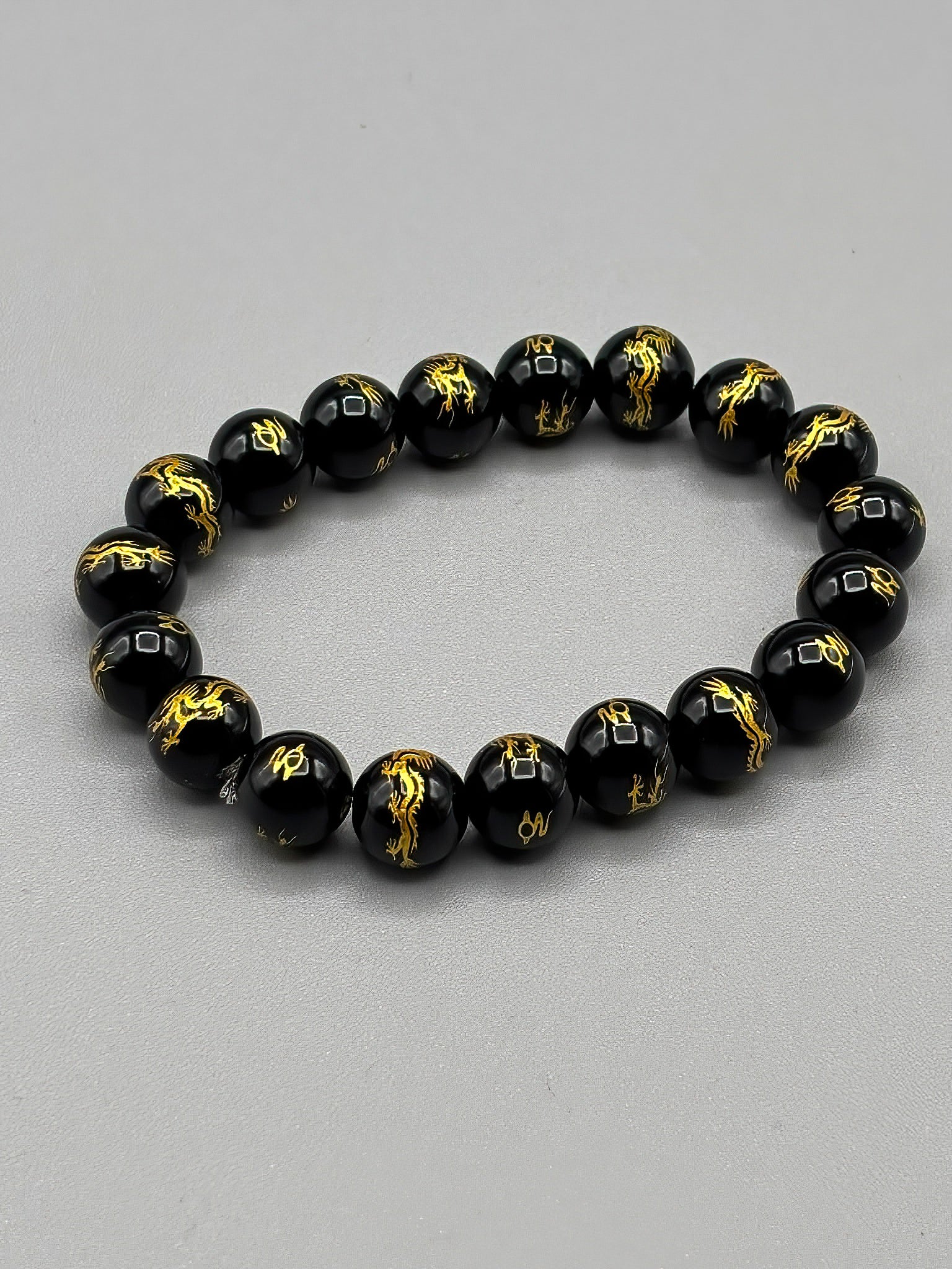 10mm Carved Black Onyx Beaded Bracelet