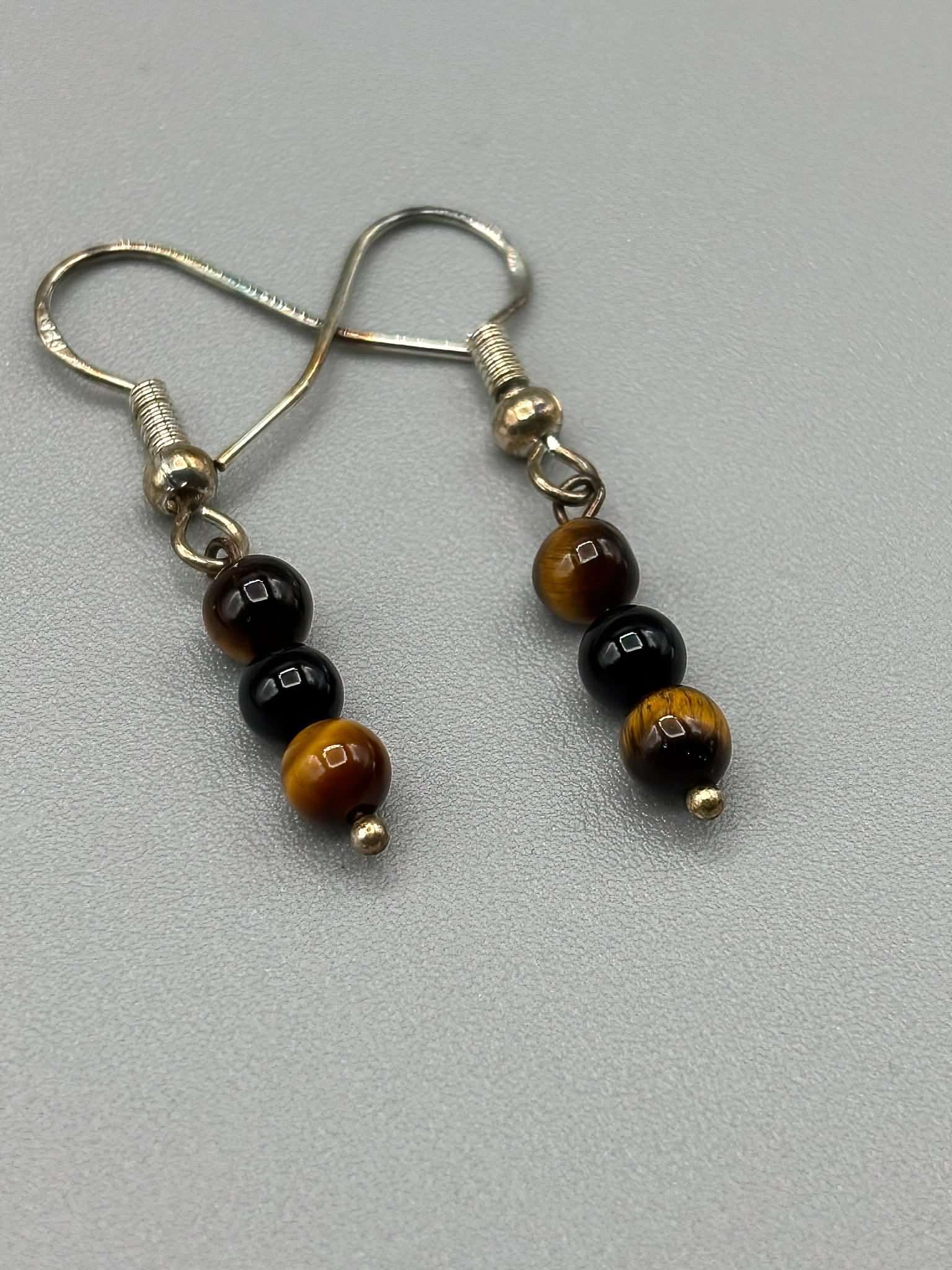 4mm Tigers Eye Bead Earrings set on Sterling Silver Hooks