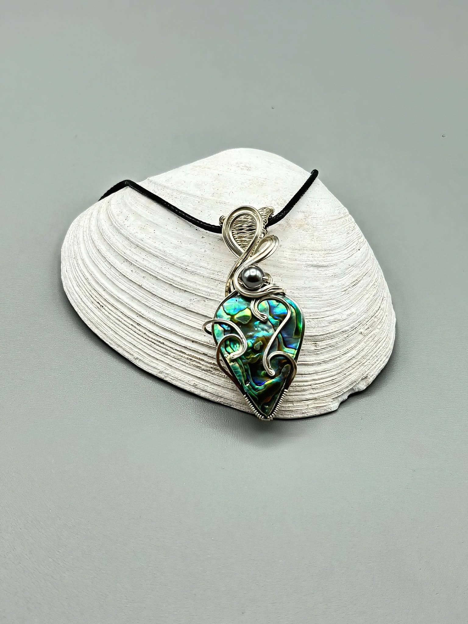 Discover the mesmerizing beauty of this sterling silver pendant, where lustrous AAA grey pearl meets the iridescent shimmer of abalone shell. Each piece showcases nature's artistry—the pearl's sophisticated grey tone paired with abalone's rainbow-hued nacre creates an eye-catching contrast that catches light from every angle. Crafted in genuine sterling silver, this elegant design offers timeless appeal perfect for those who appreciate fine jewelry with natural character. A stunning statement piece that elevates any wardrobe with understated luxury and organic elegance.