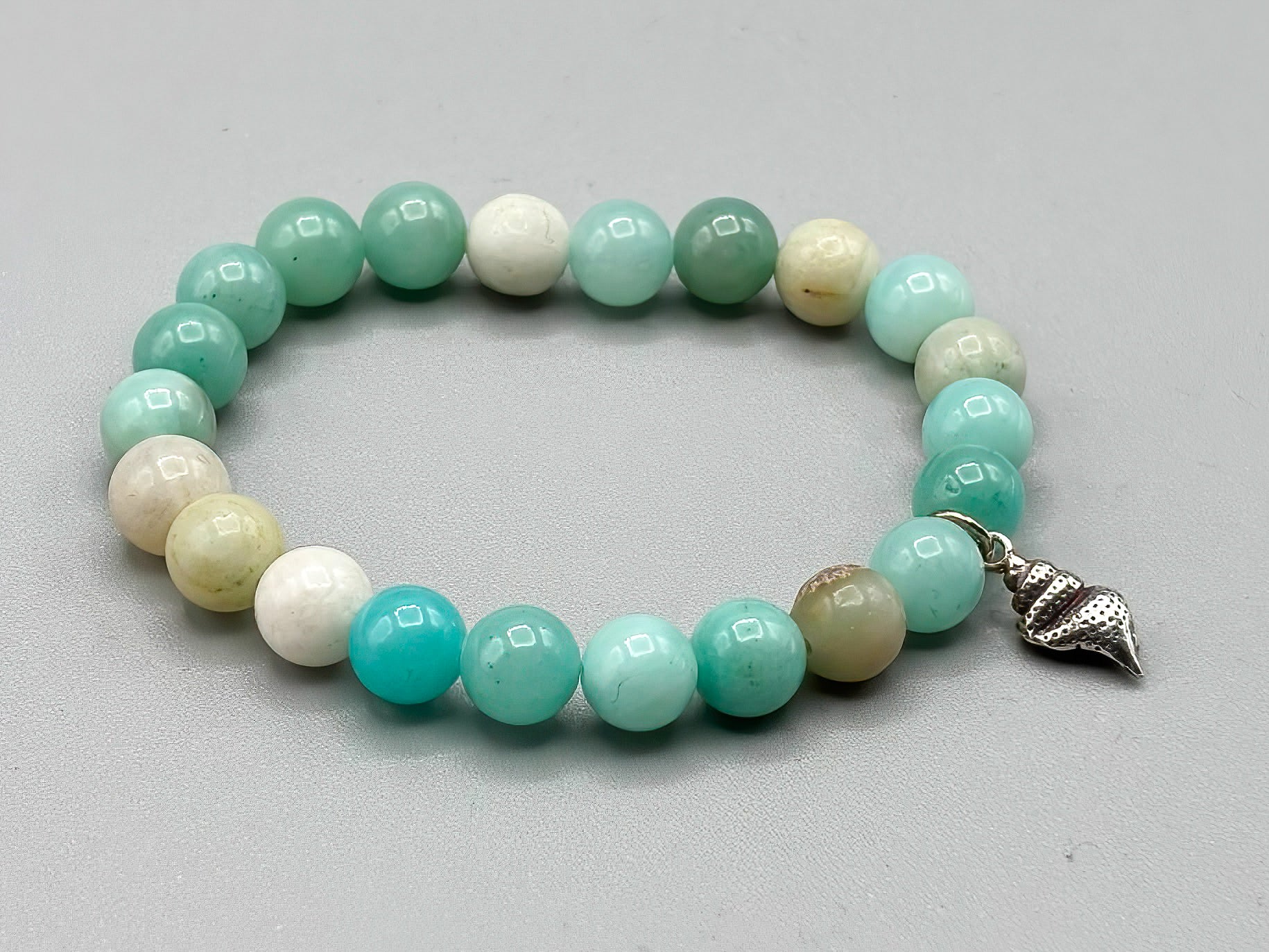 Amazonite Beaded Bracelet with Sterling Silver Shell Charm, 7 inch