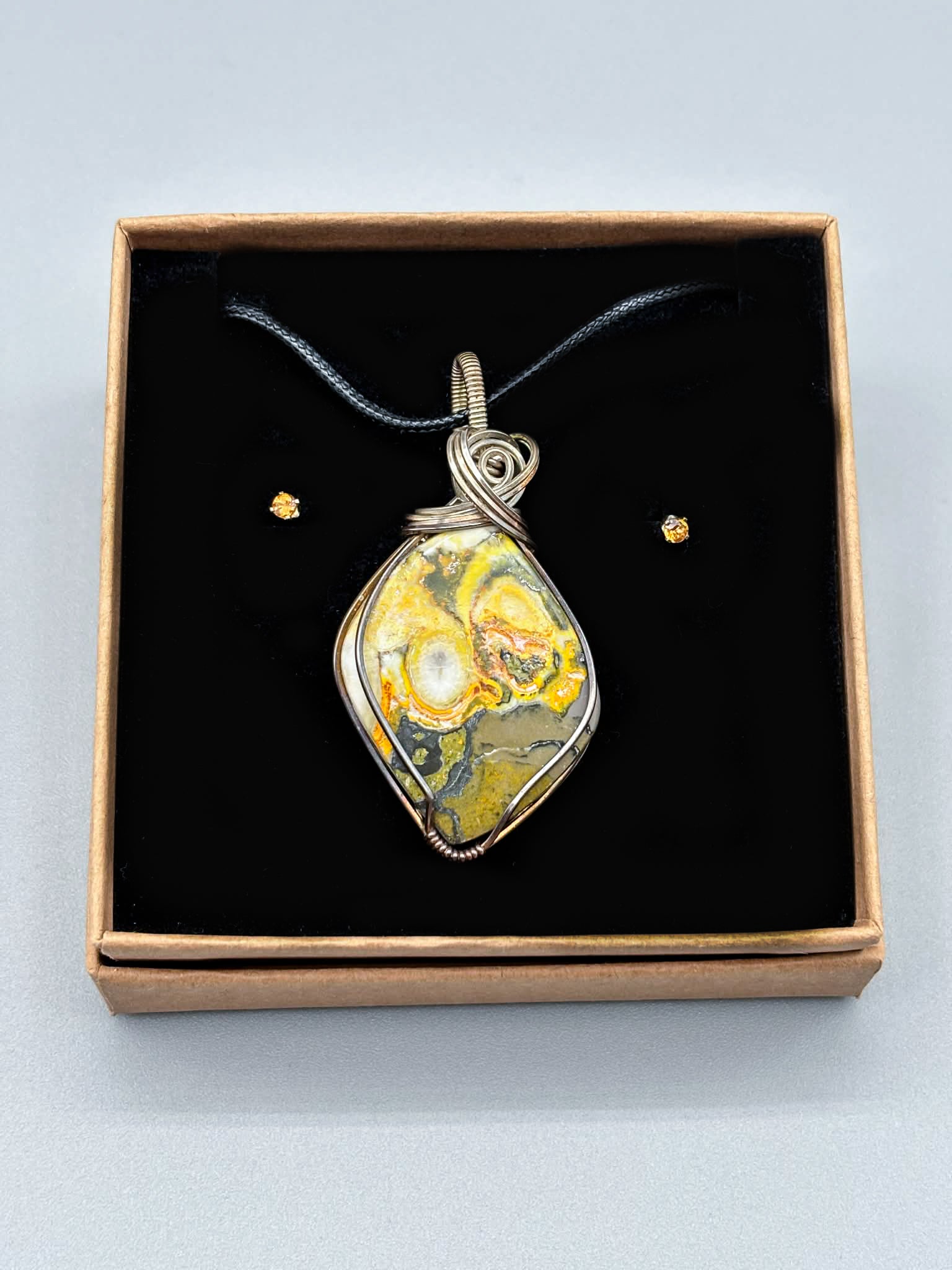 Bumblebee Jasper matched with Faygo Orange Spessartine Garnet Earrings All in Sterling Silver