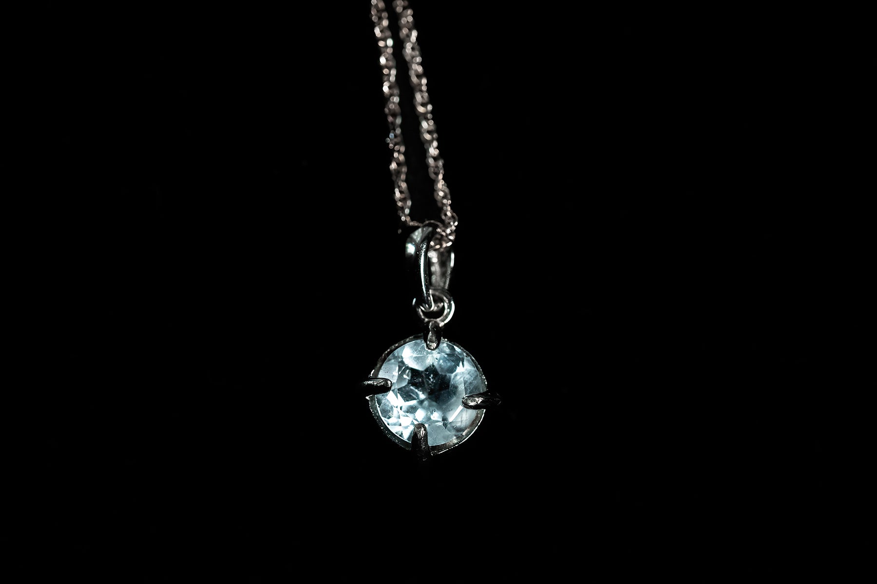 Dazzle with a touch of the ocean's beauty wearing this Faceted Aquamarine Gemstone set in .925 Sterling Silver with Chain. Let the sparkling gemstone catch the light as you walk and bring a unique color to your outfit. Perfect for adding a little whimsy to your everyday look.