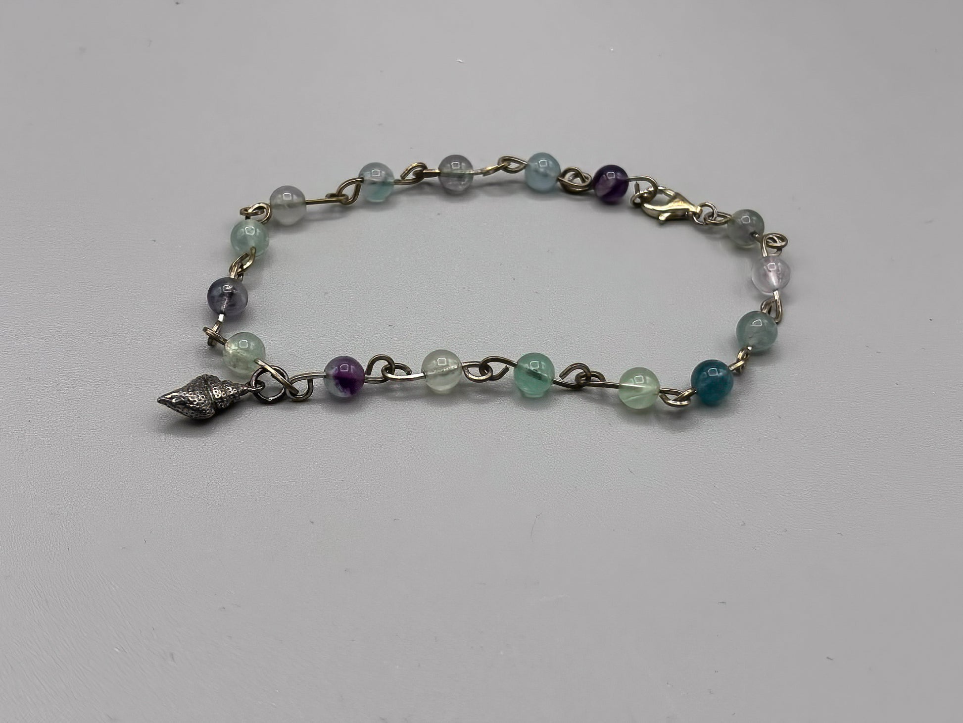 Fluorite and Sterling Silver Ankle Bracelet, approx 8 inches