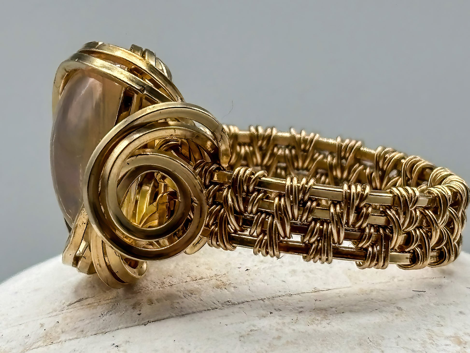 Capture the mesmerizing play of light with this stunning clear opal ring. The stone's dynamic multi-color flash creates an ever-changing display of vibrant hues as it catches the light. Expertly wrapped in lustrous 14K gold-filled wire, this size 6 ring combines natural beauty with elegant craftsmanship. Perfect for those who appreciate unique gemstones and artisanal jewelry design. A timeless piece that brings sophistication and wonder to any collection.