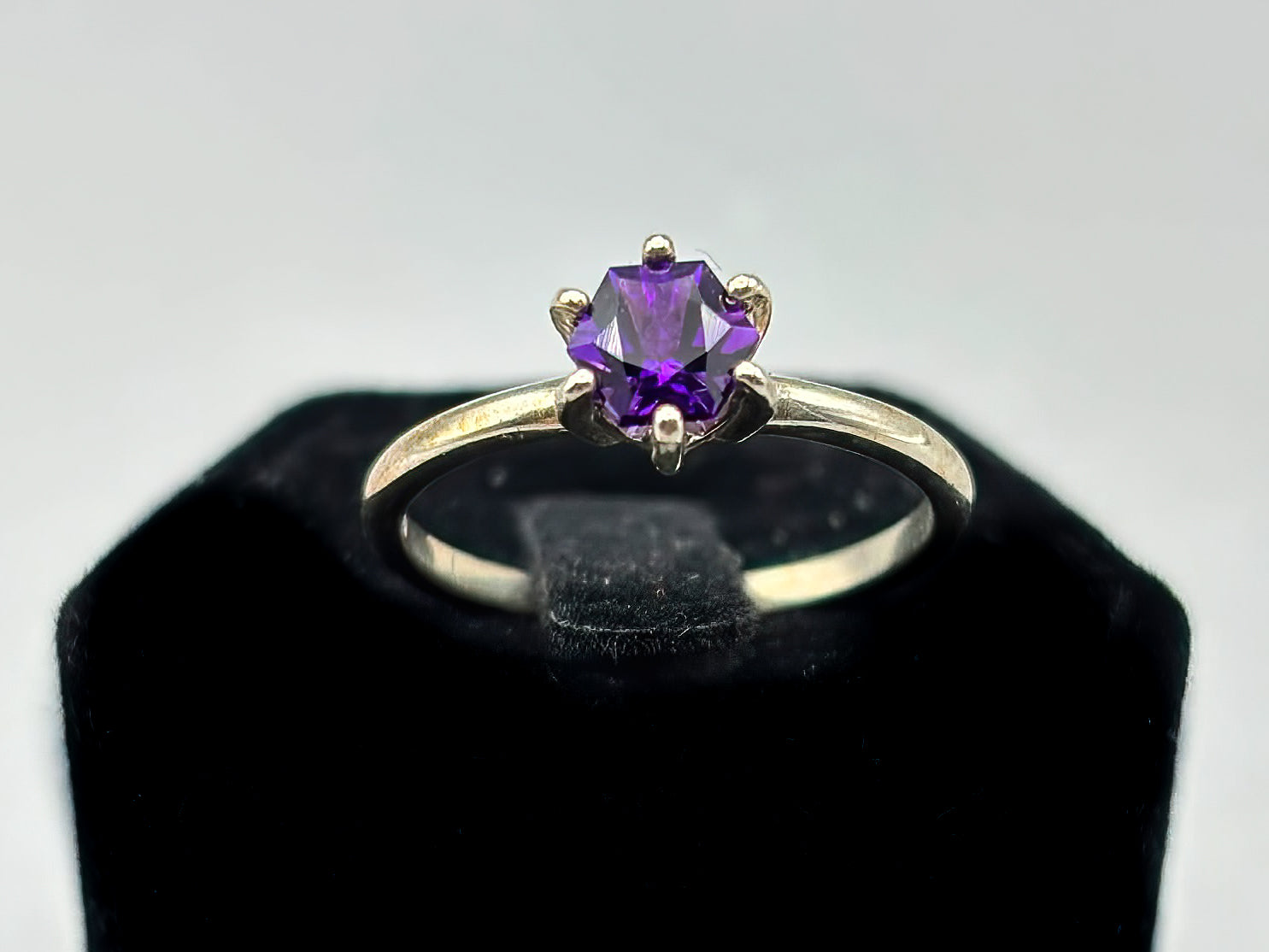 Hexagon Amethyst set in Sterling Silver Band, Size 7