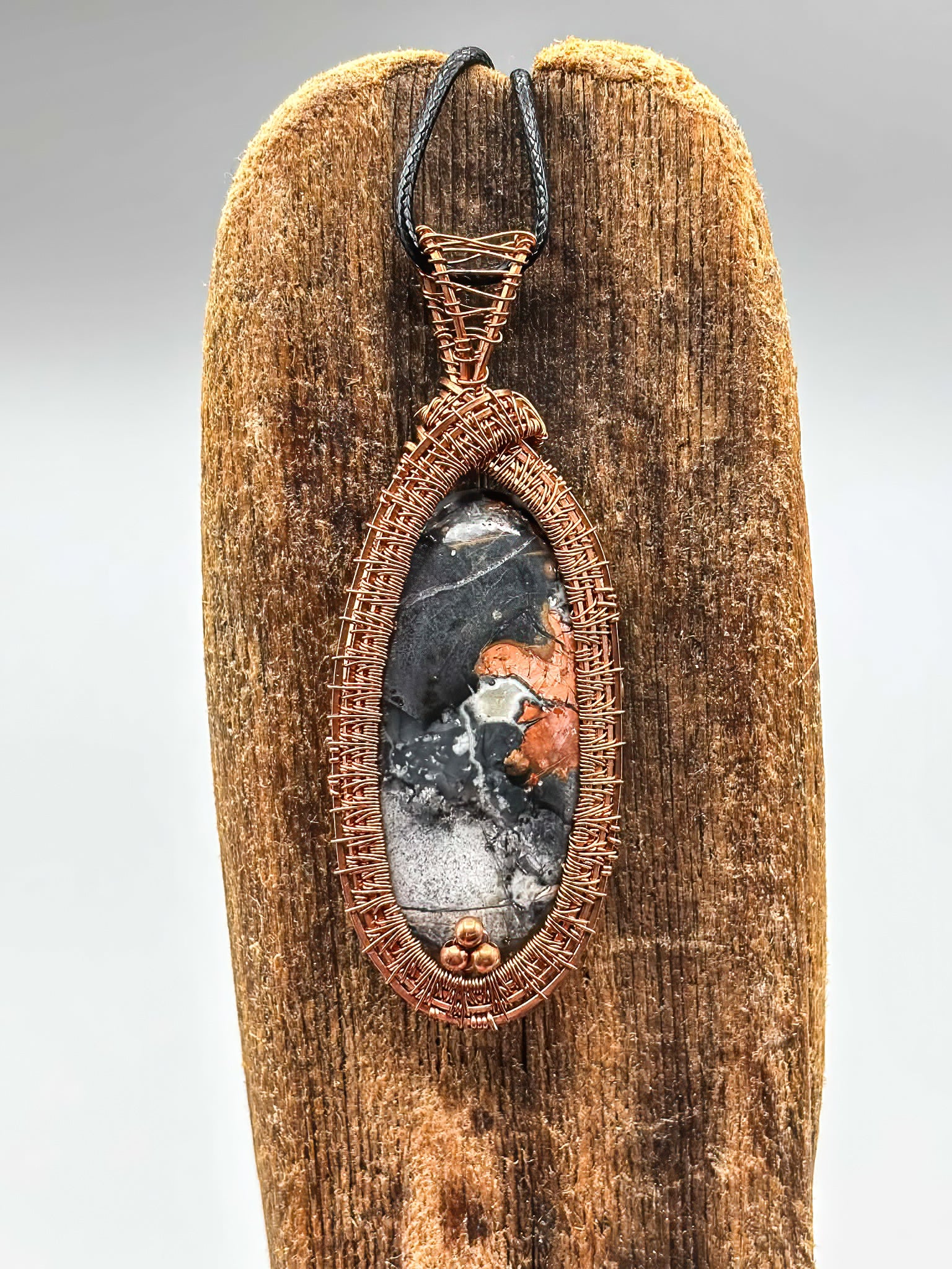 Large Magliano Jasper in Intricate Copper Wire Wrap