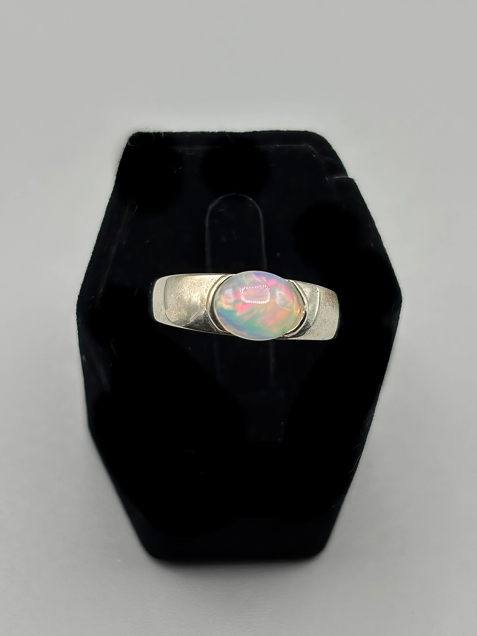 Oval Opal set in wide Sterling Silver Band, Size 8