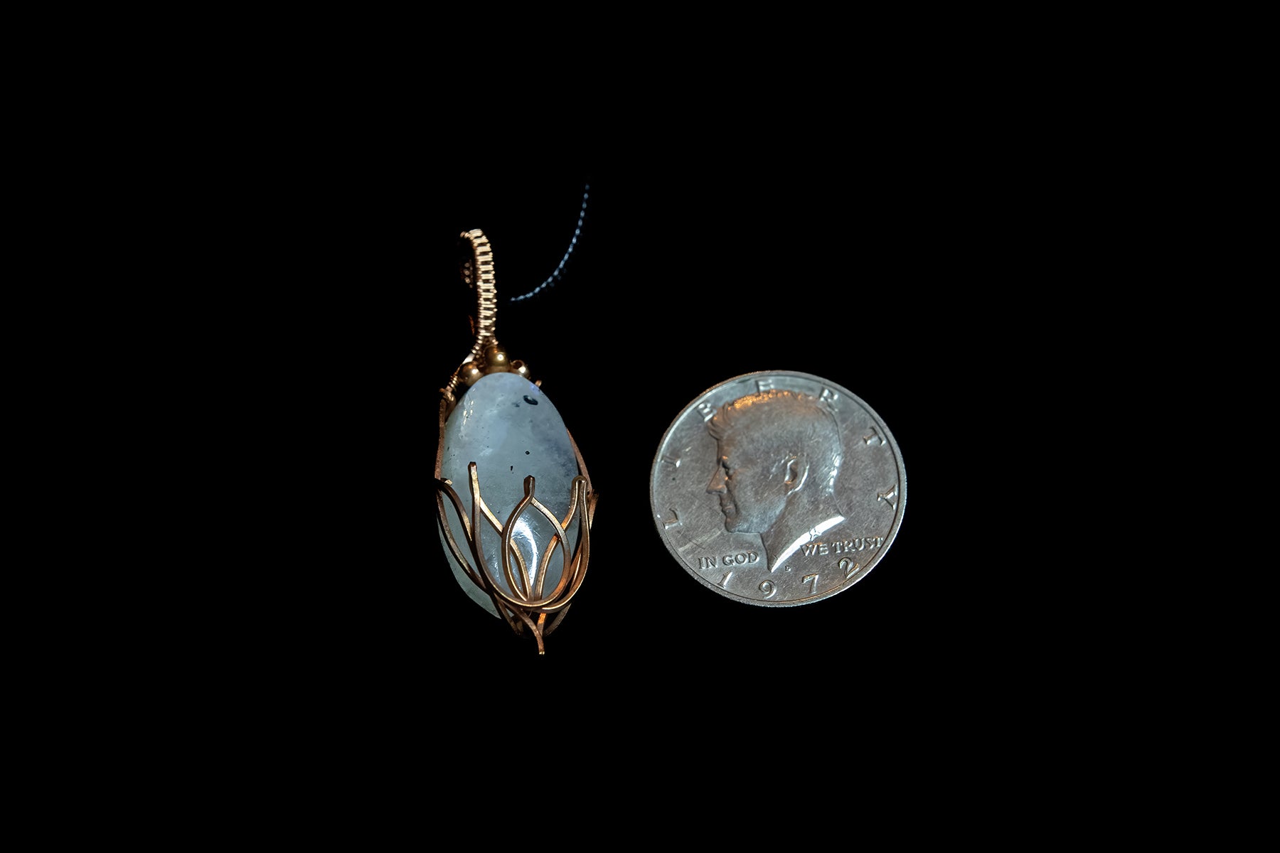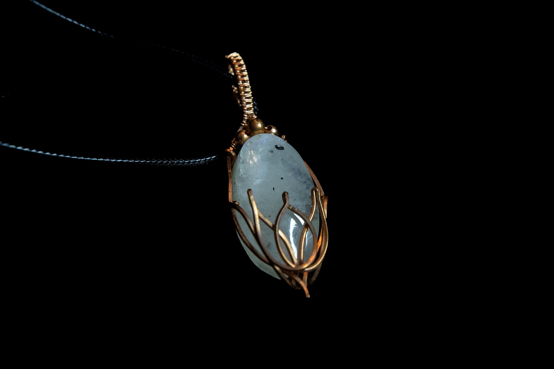 Tourmaline Moonstone in Fine Copper Lotus Cage