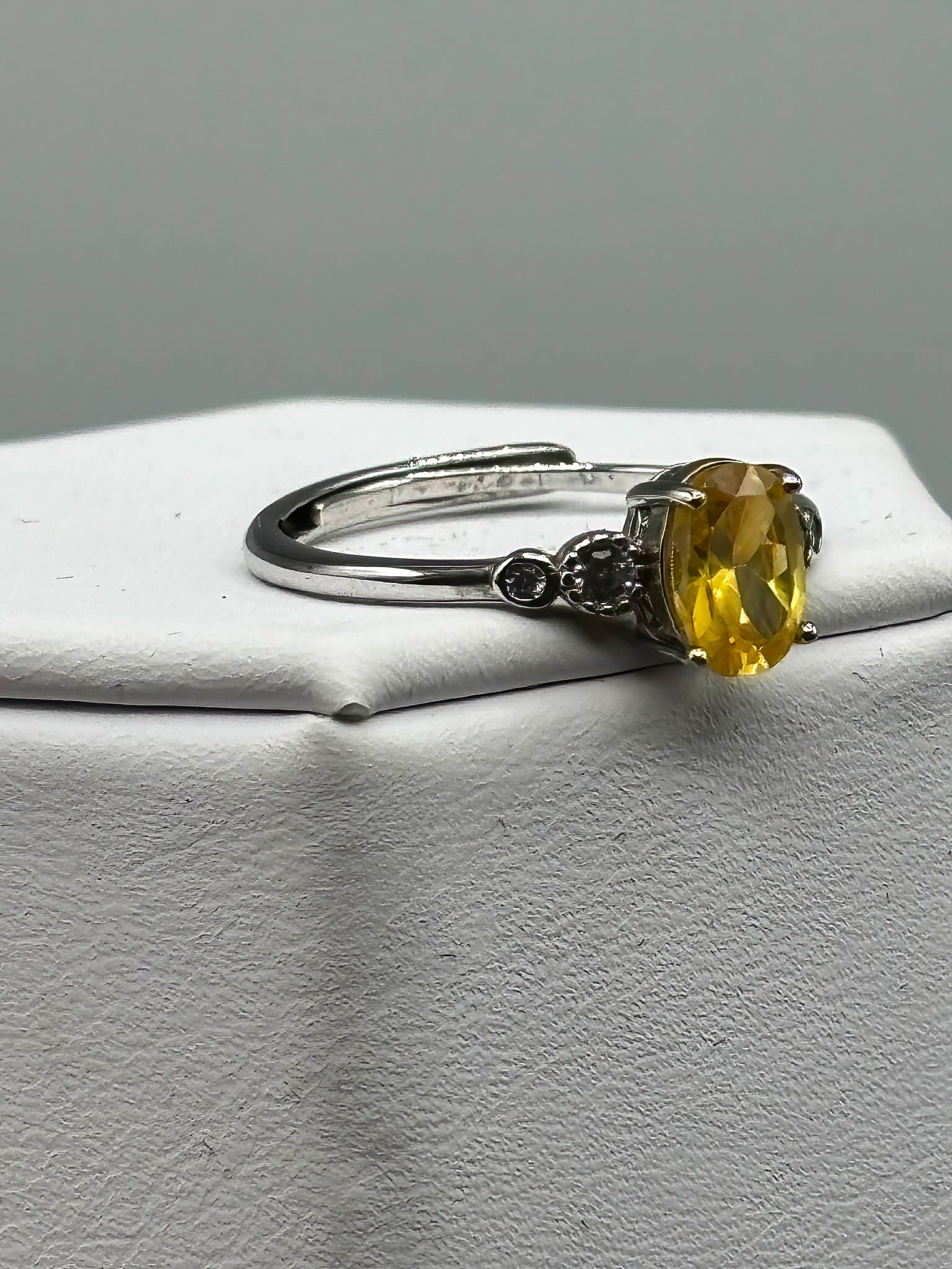 Yellow Cubic Zirconia with white accents, set in adjustable sterling silver band